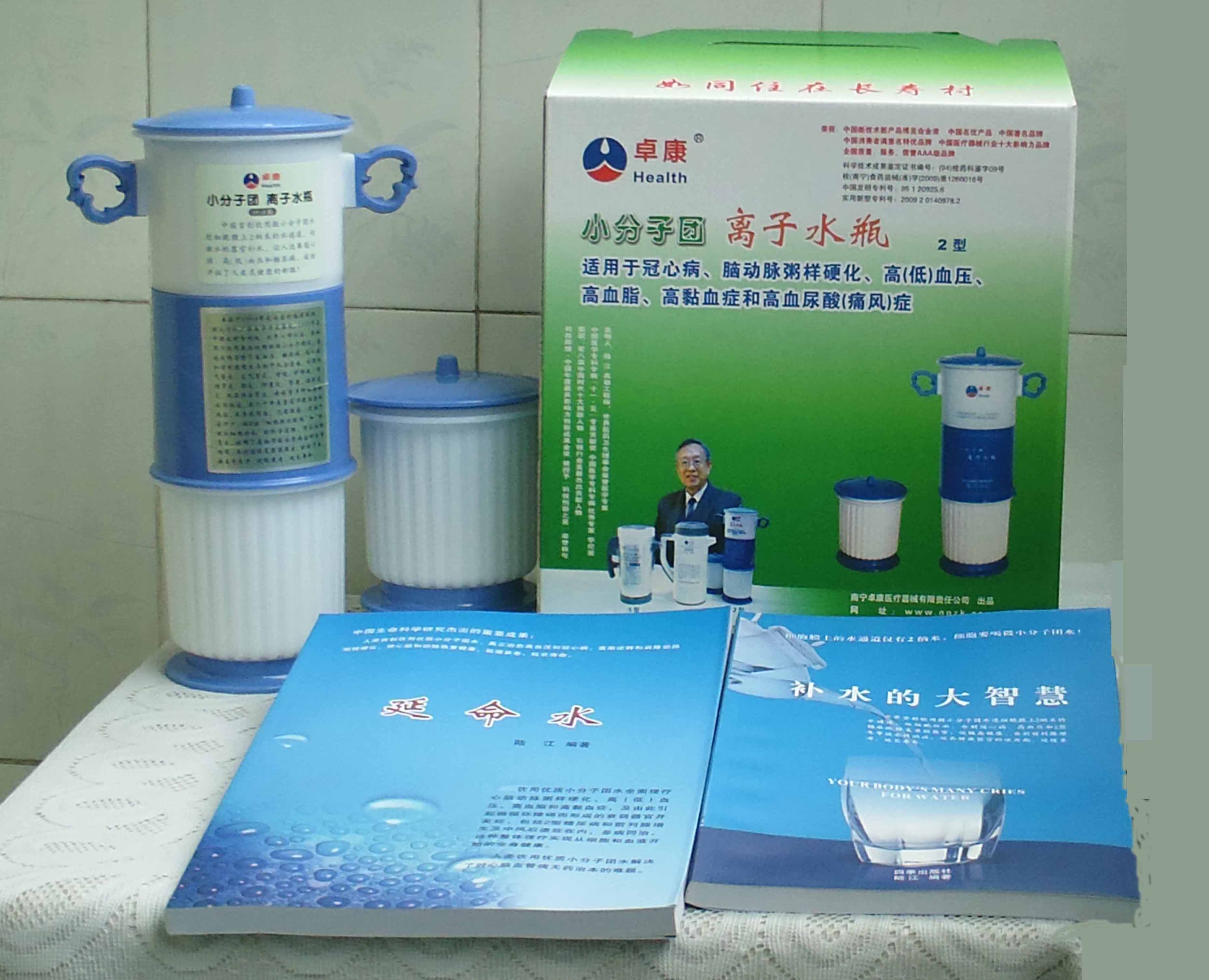 本品大量用戶的使用效果表明,能治愈冠心病、腦動脈硬化、原發(fā)性高(低)血壓、高血脂、高粘血癥、高血尿酸癥(痛風)和2型糖尿病、衰弱器官并發(fā)癥(前列腺增生、腎衰與尿毒癥)及中風后遺癥等療效好。產品配信譽卡。使用壽命30年,不換芯,易清洗。團購優(yōu)惠。從郵局匯款,匯費1%,地址按本頁下方地址、聯系人寫。從銀行匯款,請點擊[聯系匯款]欄,從工商銀行匯款,建設銀行、農業(yè)銀行匯款,均免收匯費,匯款后20--30分鐘內發(fā)短信,可用微信轉帳,均免匯費,微信號即手機號13768308380。匯款后,告知你的姓名和地址,我公司聯系人手機號是:13768308380卓康牌離子水瓶為我公司獨家生產,郵購產品配《補水的大智慧》彩印書一本,另配四季出版社出版的新書《補水的大智慧》一本,并配光盤一張(含央視主持人釆訪陸江的對話視頻)。目前市場和"淘寶網"上有人兜售假冒的偽品,望讀者審察辯別真?zhèn)危旒僬哓飧`假冒本公司的各種證、獲獎獎項、專利號和外包裝盒上的中英文字,包括科技成果的鑒定意見等,請讀者注意防偽。如何識別假貨?已經買了假貨怎么辦?(請點擊[打假掠影][打假掠影])。